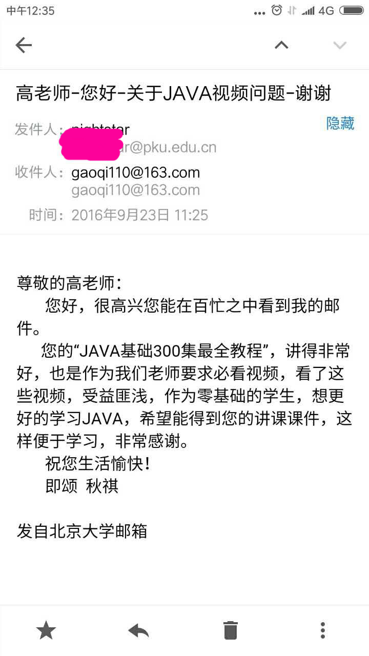 近期,尚學堂高淇老師收到一封來自北京大學的郵件: